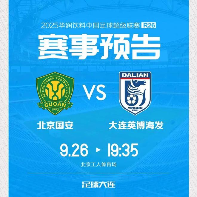 根据赛程,大连英博海发将在9月26日赴客场挑战北京国安。期待大连英博海发能有更为出色的表现,为尽早实现保级目标、争取更高排名奠定更坚实的基础。