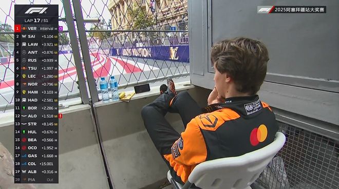 比赛进行到第17圈,现场画面突然给到在赛道旁已经退赛的皮亚斯特里,翘着腿看着比赛直播,这样的性格也让“相声团”三人感叹,和“头哥”是真像啊......