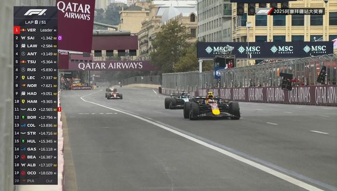 五盏红灯熄灭,阿塞拜疆大奖赛正式开始!比赛开始后,前六名都守住了自己位置!但皮亚斯特里起步熄火直接掉落至队尾,随后在5号弯由于失去抓地力直接上墙退赛!与此同时触发黄旗,同时其个人连续34场完赛的数据也就此终结。