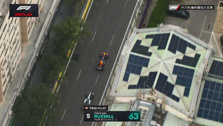 第10圈,拉塞尔在3号弯之前利用DRS超越角田,重新回到第5!并且瞬间将对手甩出自己的DRS区。
