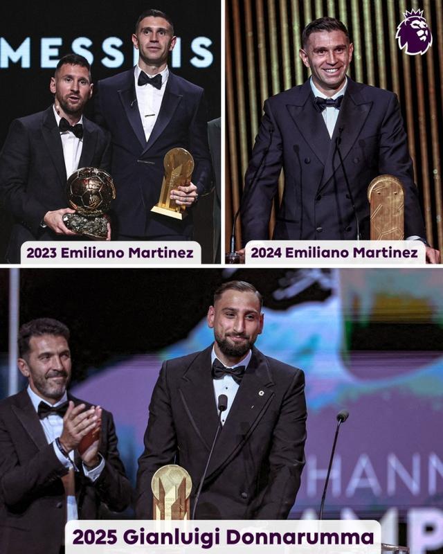 维拉门将马丁内斯在2023年和2024年蝉联雅辛奖,今夏加盟曼城的多纳鲁马则获得了2025年雅辛奖。