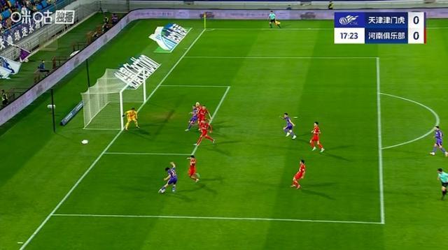 09月28日讯 中超第26轮,天津津门虎vs河南。比赛第17分钟,津门虎破门但被判越位,孙铭谦左侧似传似射直接滚入球网,回放显示门前的基莱斯虽然似乎没有碰球,但是在越位位置参与了进攻,进球无效。
