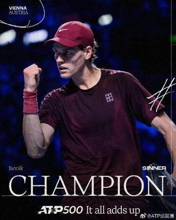ATP500维也纳决赛,辛纳2比1逆转兹维列夫夺冠。头号种子辛纳3比6 6比3 7比5逆转2号种子兹维列夫,将双方交手记录改写为4比4。继2023年之后再在本站夺冠,这也是他本赛季第4冠、生涯22冠。