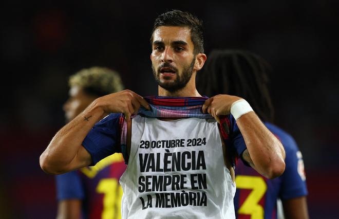 在进球之后,费兰-托雷斯掀起了自己的球衣,并露出了背心正面的印字,上面写着:“2024年10月29日,永远铭记瓦伦西亚。”
