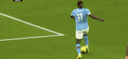 VAR介入,慢动作可以看出玛玛达什维利放倒了多库,裁判判罚点球,哈兰德操刀。