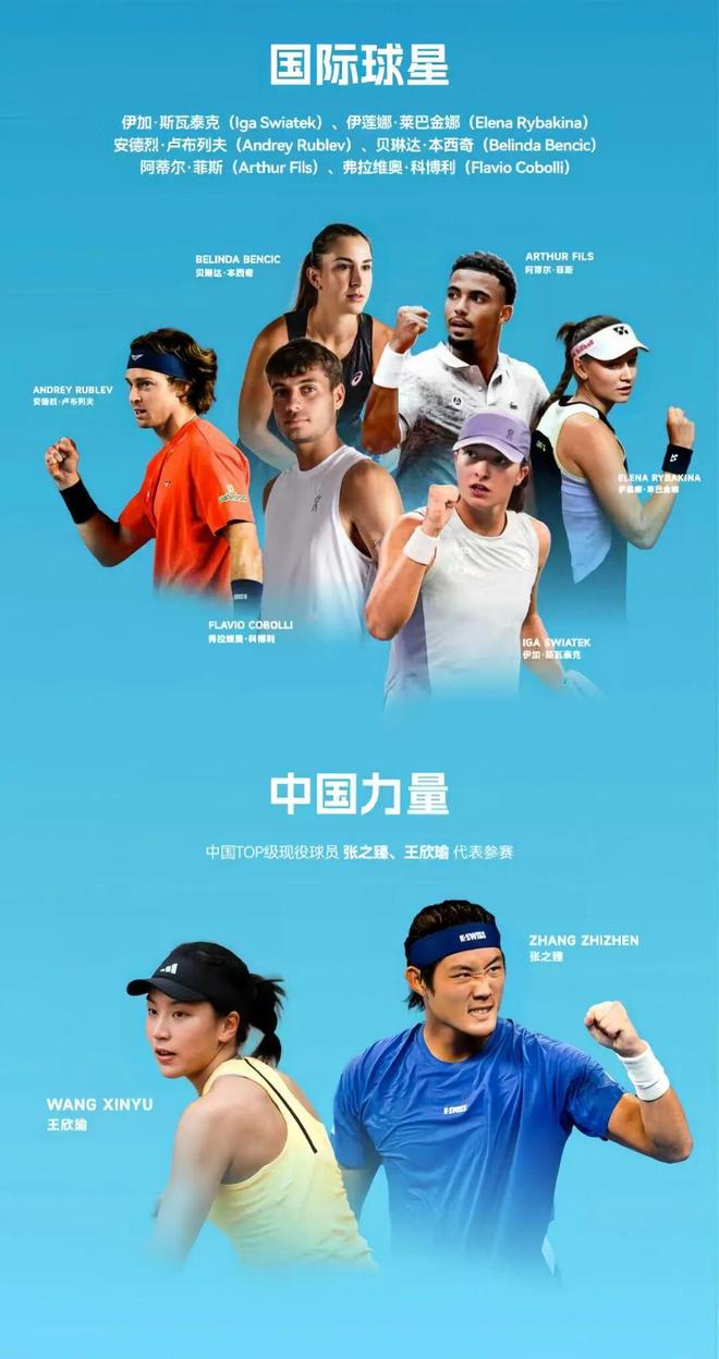 欧洲队由六届大满贯冠军得主波兰名将斯瓦泰克领衔,瑞士“公主”本西奇、法国小将菲斯、意大利新星科博利组队参赛。世界队则邀请了中国首个奥运会网球混双银牌得主王欣瑜、张之臻,哈萨克斯坦的“冰美人”世界第九的莱巴金娜、两届大师赛冠军俄罗斯的卢布列夫强援加盟。
